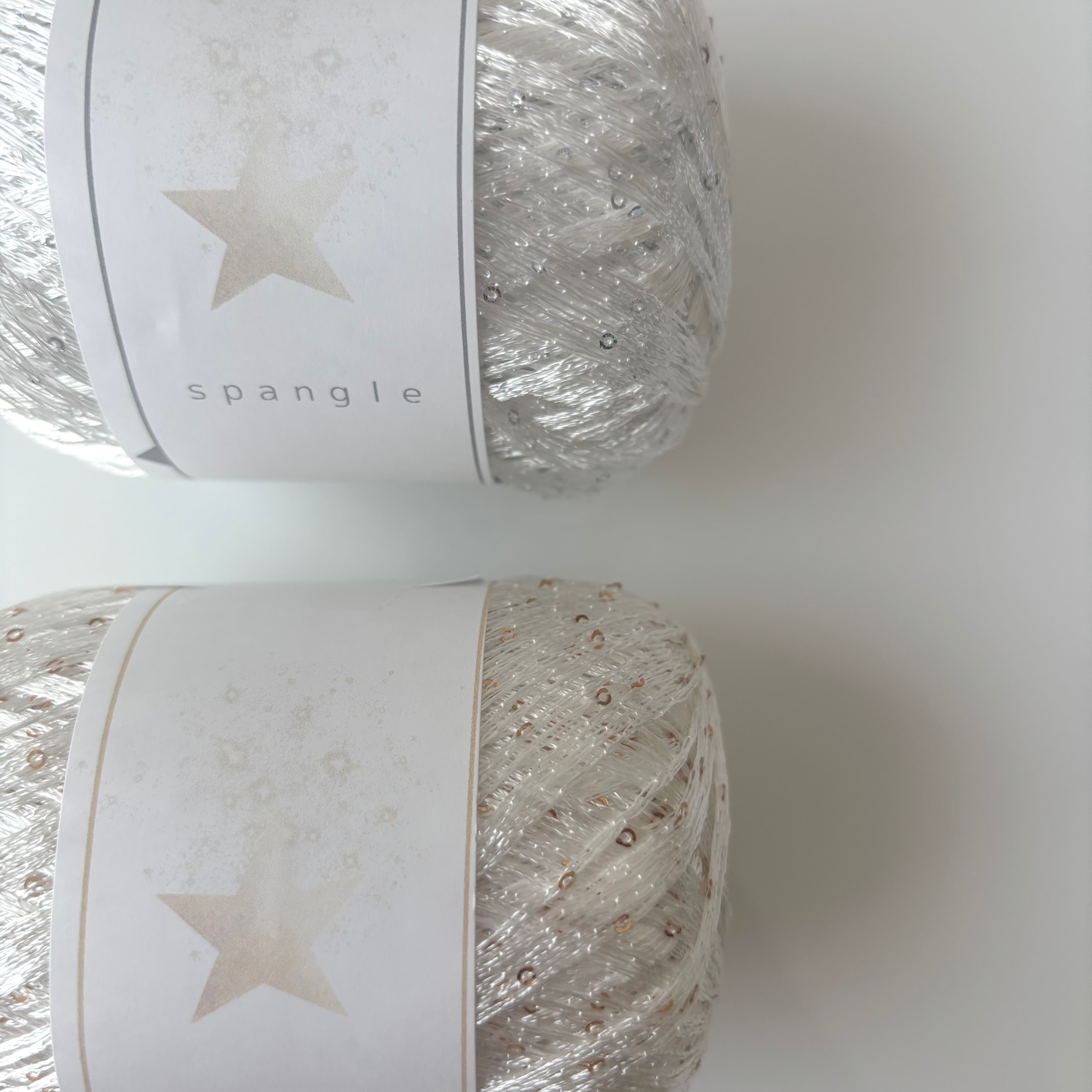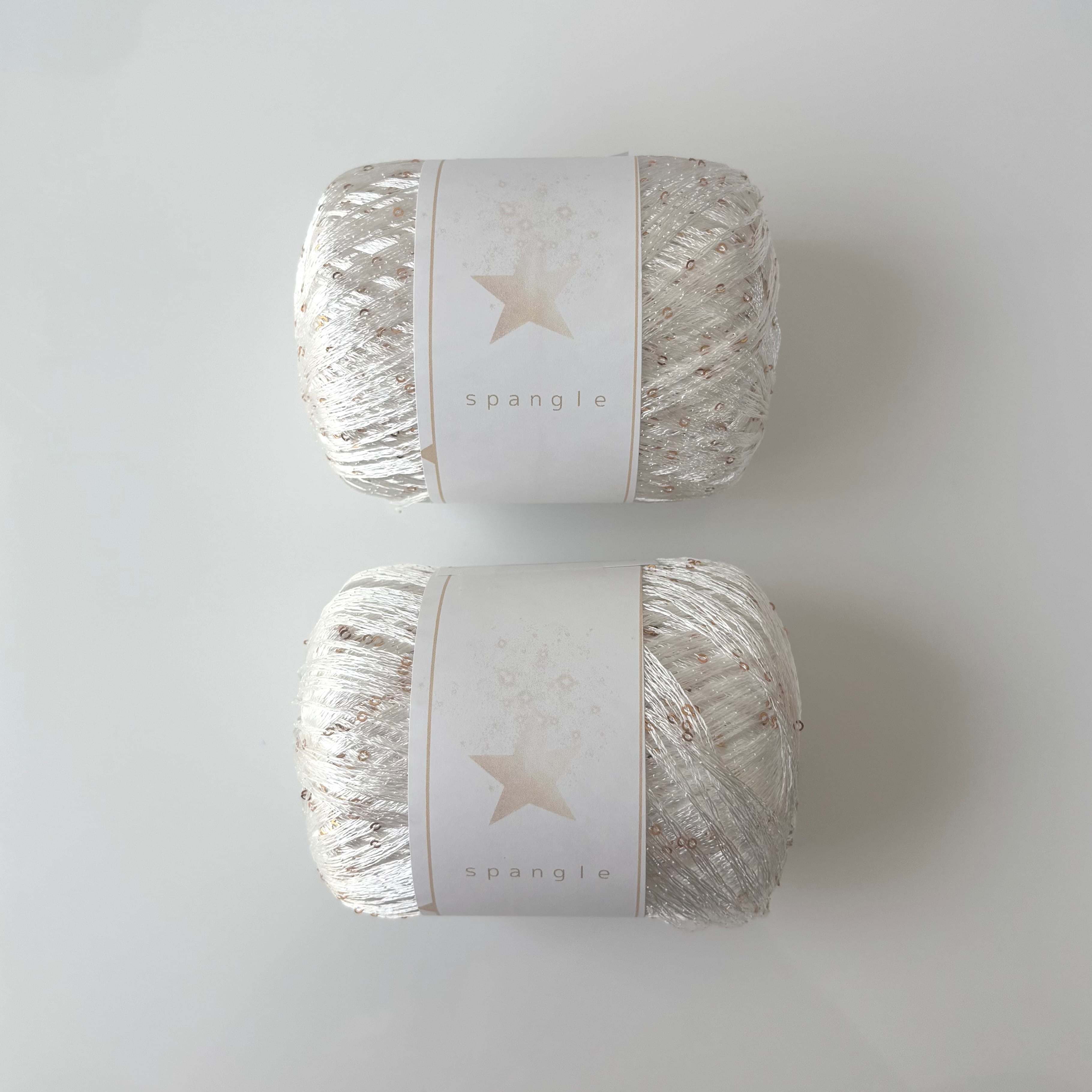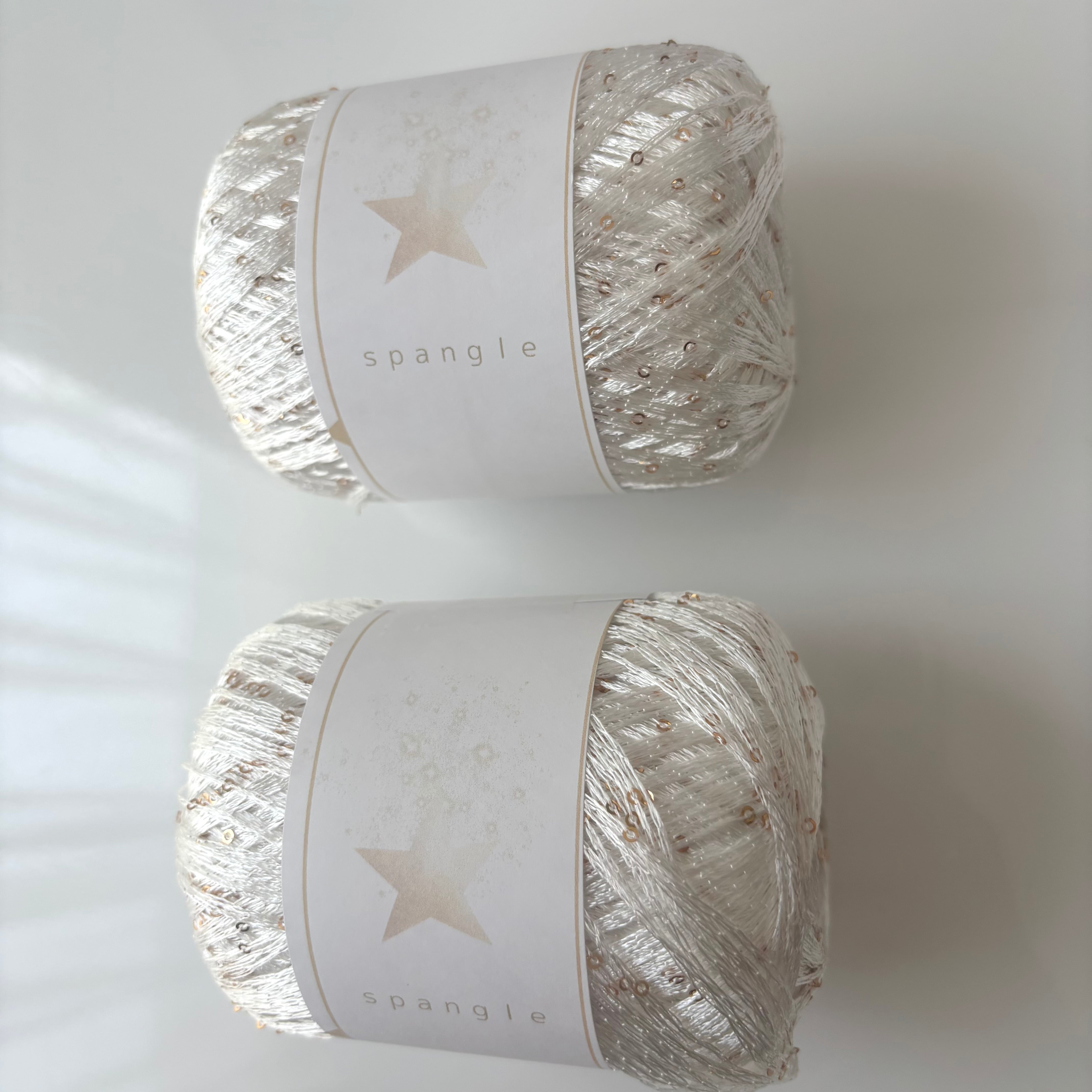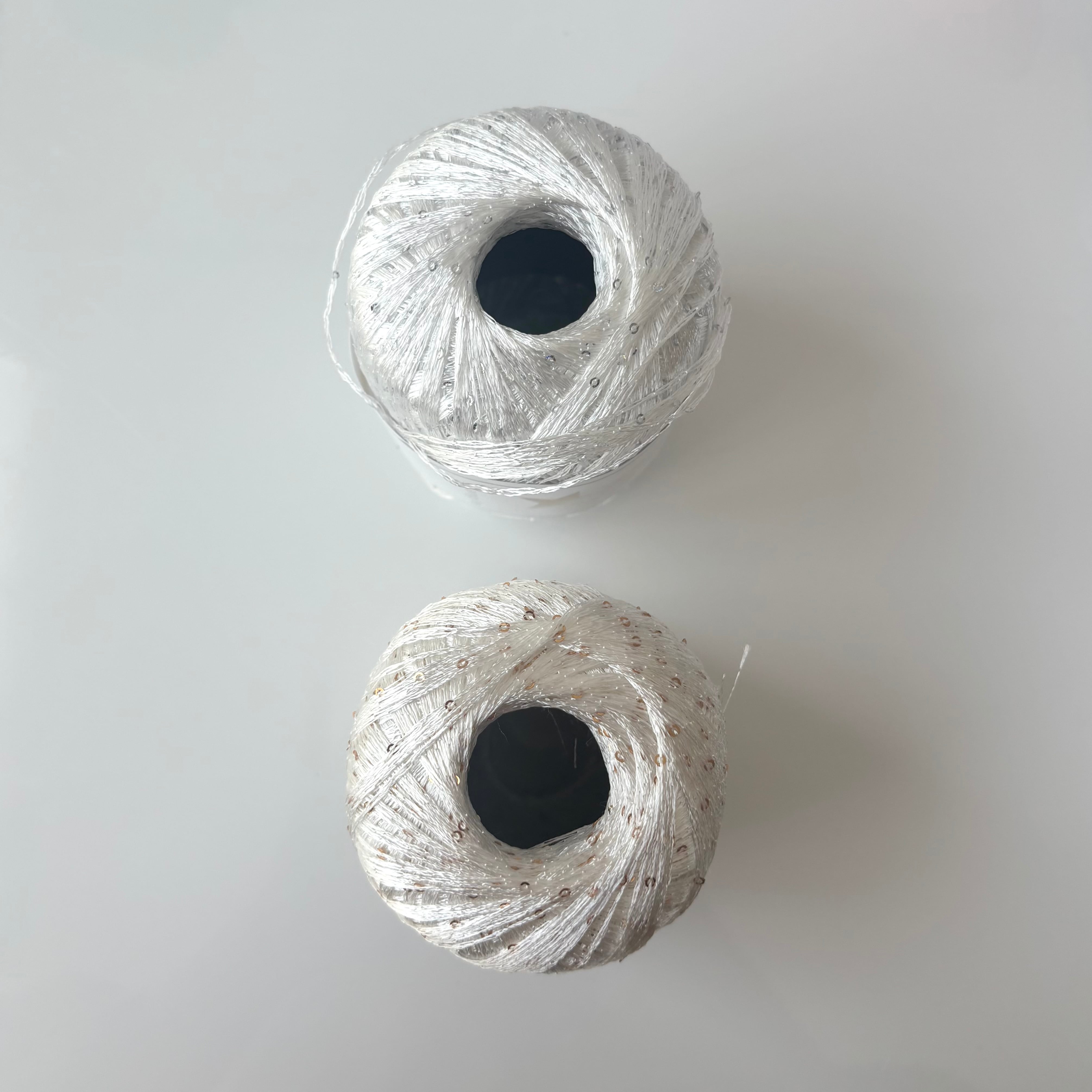 ※こちらの作品はサンゴとスパンコールを引き揃えて編んでおります。