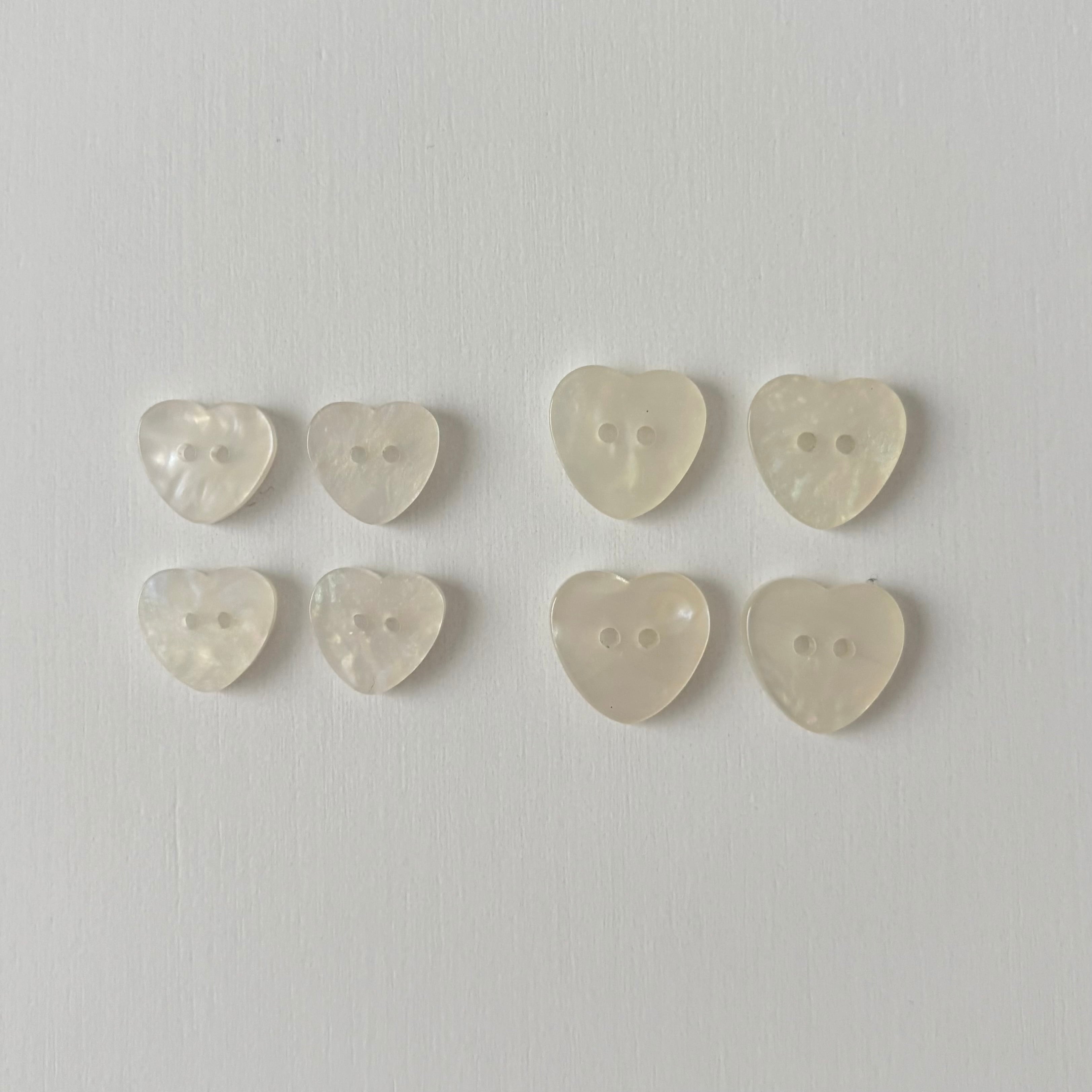 ▫️商品名 heart ボタン 4個販売です。 ▫️ポイント こちらのパーツは、 小物のアクセントとしてご利用いただけます。 透明感があり可愛いアイテムです。 ▫️サイズ 縦2cm 横2.2cm 厚さ3㎜ 穴3㎜ (mini)縦2cm 横2.2cm 厚さ3㎜ 穴3㎜ ▫️重さ 1g