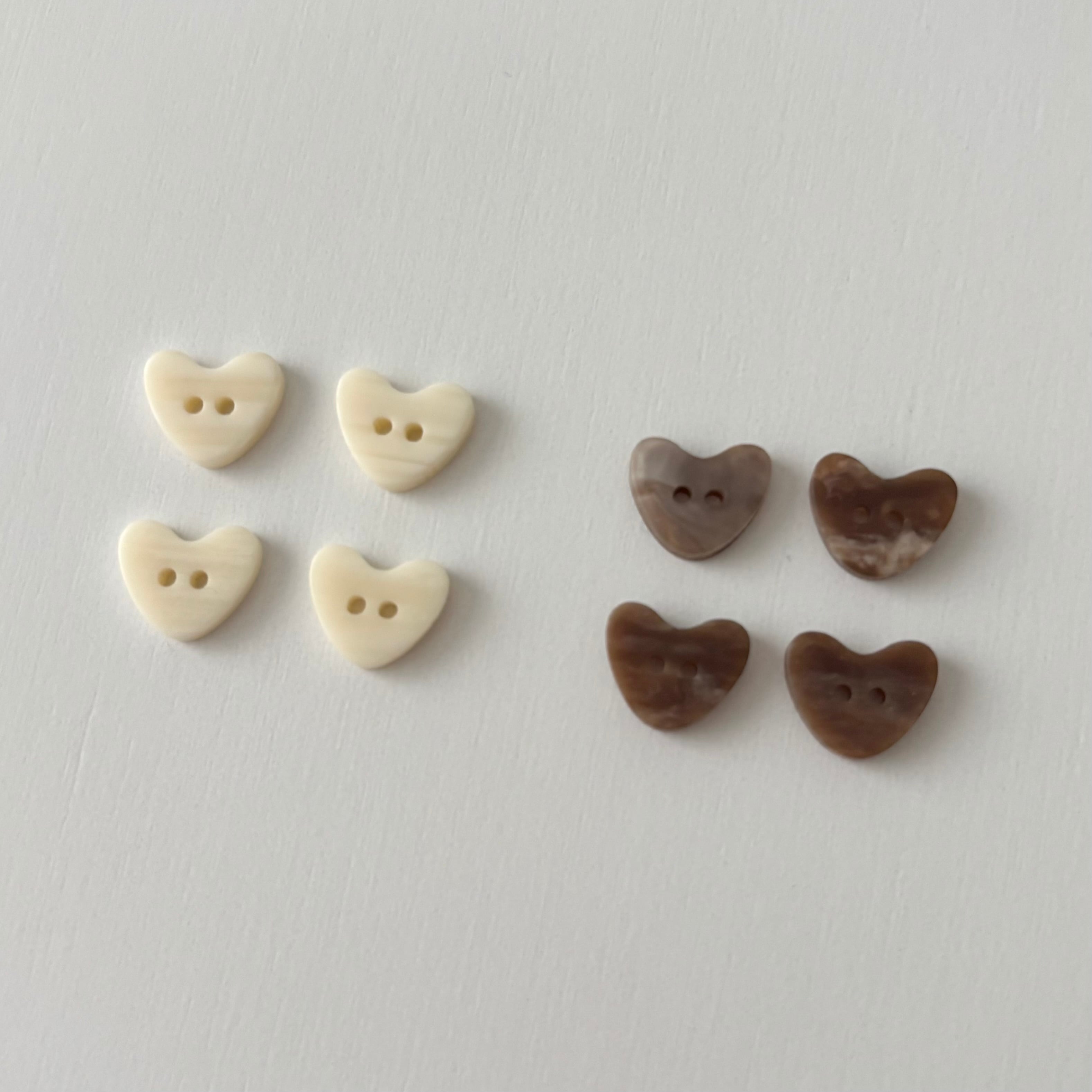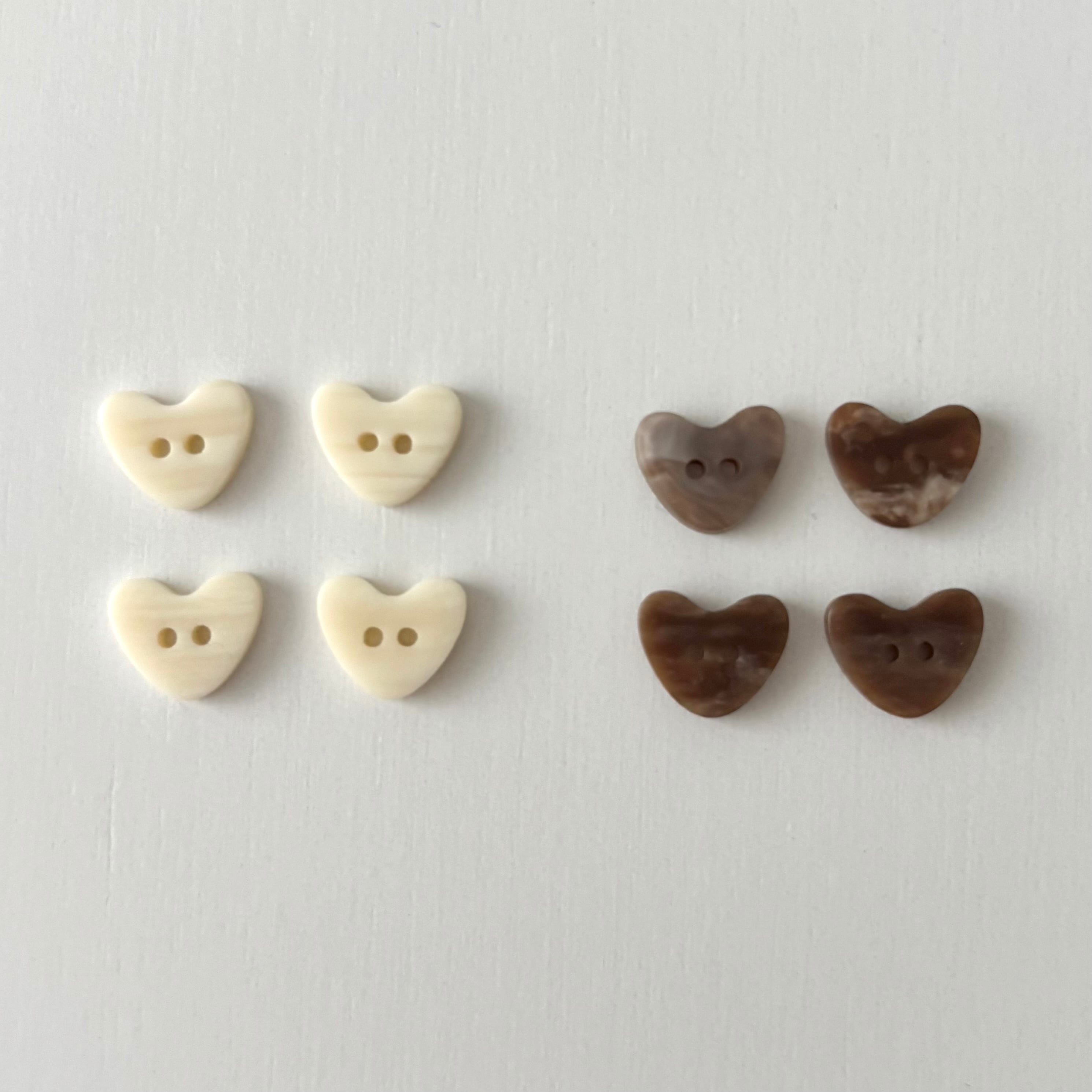 ▫️商品名 heart ボタン 4個販売です。 ▫️ポイント こちらのパーツは、 小物のアクセントとしてご利用いただけます。 ▫️カラー展開 cream brown ▫️サイズ 縦1cm 横1.2cm 厚さ2㎜ 穴1㎜ ▫️重さ 1g