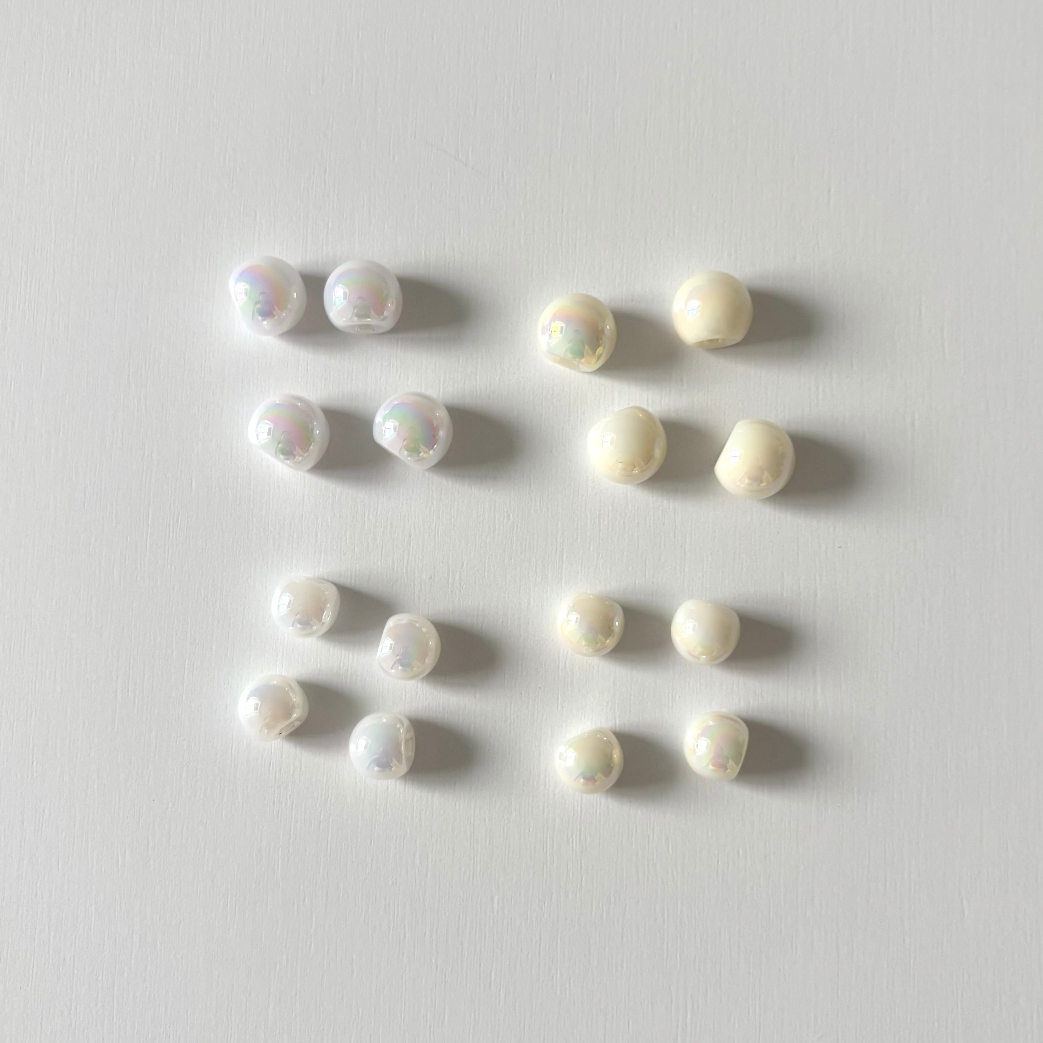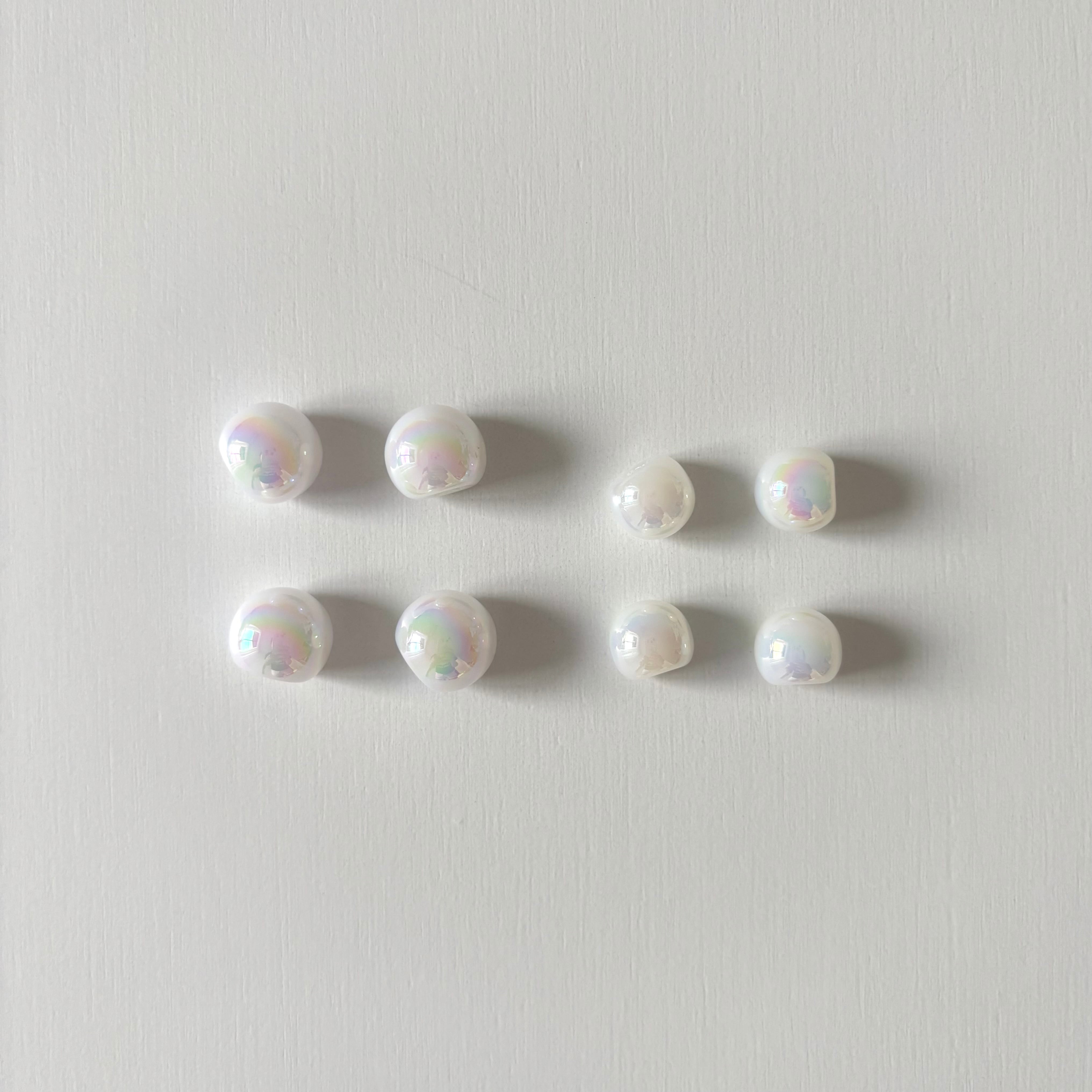 ▫️商品名 perl ボタン 4個販売です。 ▫️ポイント こちらのパーツは、 小物のアクセントとしてご利用いただけます。 ▫️サイズ [10mm]縦1.0cm横1.0cm穴2㎜ [12mm]縦1.2cm横1.2cm穴2㎜ ▫️重さ 約1g